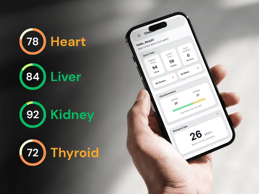 Test 100+ biomarkers, get actionable health scores, and personalised recommendations for diet, supplements and lifestlye — all from home.